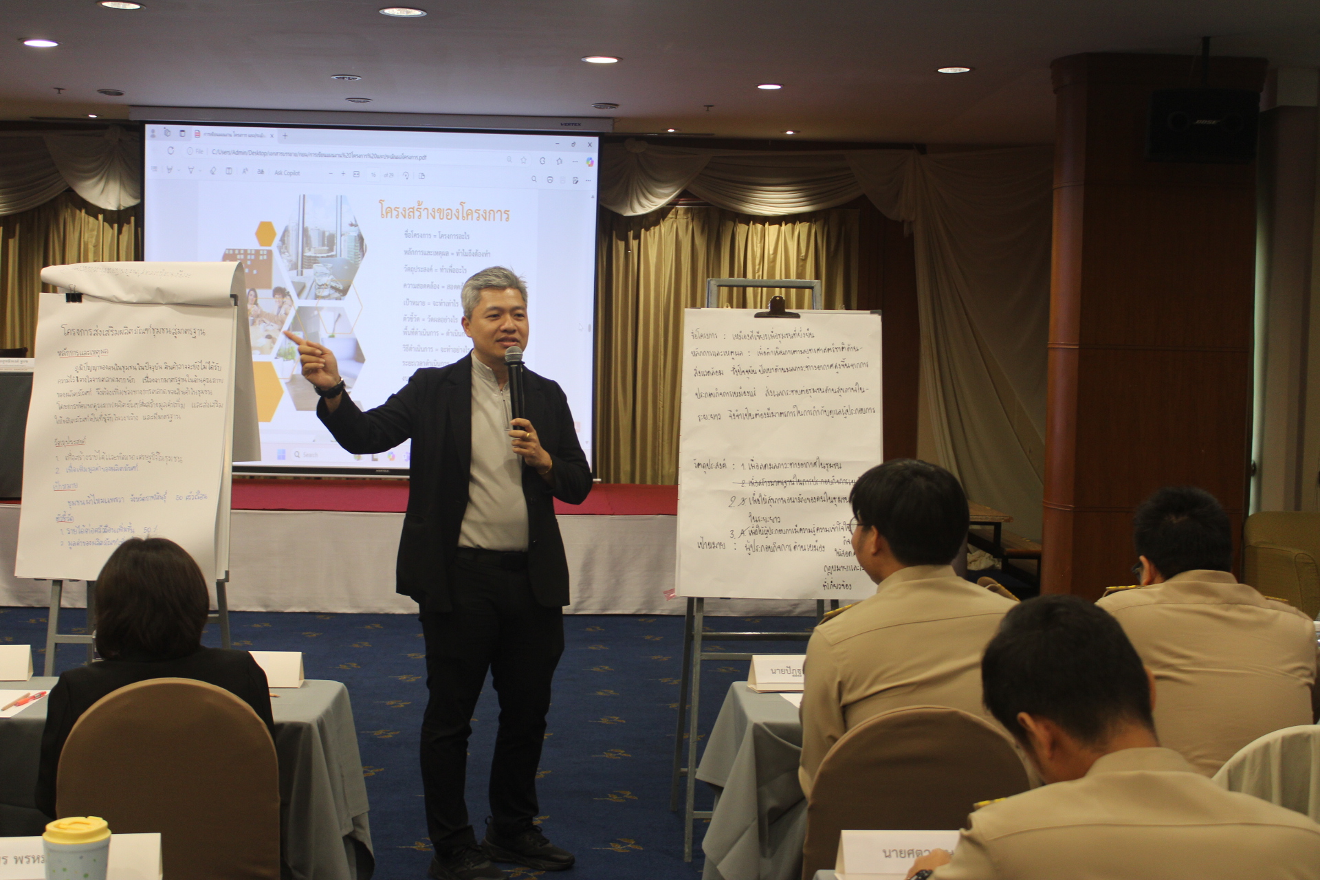 การฝึกอบรมดังกล่าวมีเนื้อหาวิชาด้านประมวลจริยธรรมสำหรับข้าราชการพลเรือน และวินัยและจรรยาข้าราชการ ปรัชญาการเป็นข้าราชการและบทบาทหน้าที่การเป็นข้าราชการที่ดี การคิดแยกแยะประโยชน์ส่วนตนและประโยชน์ส่วนรวม เพื่อปลูกฝังปรัชญาการเป็นข้าราชการที่ดีและส่งเสริมด้านคุณธรรมและจริยธรรม รวมทั้งเนื้อหาด้านกฎระเบียบที่เกี่ยวข้องกับการปฏิบัติหน้าที่ราชการ เช่น ระเบียบการเบิกจ่ายทางราชการ การฝึกอบรมเนื้อหาด้านเทคโนโลยีดิจิทัล เช่น เทคนิคการใช้โปรแกรม CHATGPT รวมถึงเนื้อหาด้านเทคนิคการเขียนหนังสือราชการ เพื่อเพิ่มประสิทธิภาพการทำงานเพื่อเสริมสร้างสมรรถนะและทักษะที่จำเป็นสำหรับการปฏิบัติราชการ ตลอดจนการพัฒนาเครือข่าย สร้างสายสัมพันธ์ที่ดีในการปฏิบัติงานระหว่างส่วนราชการในสังกัดกระทรวงอุตสาหกรรม