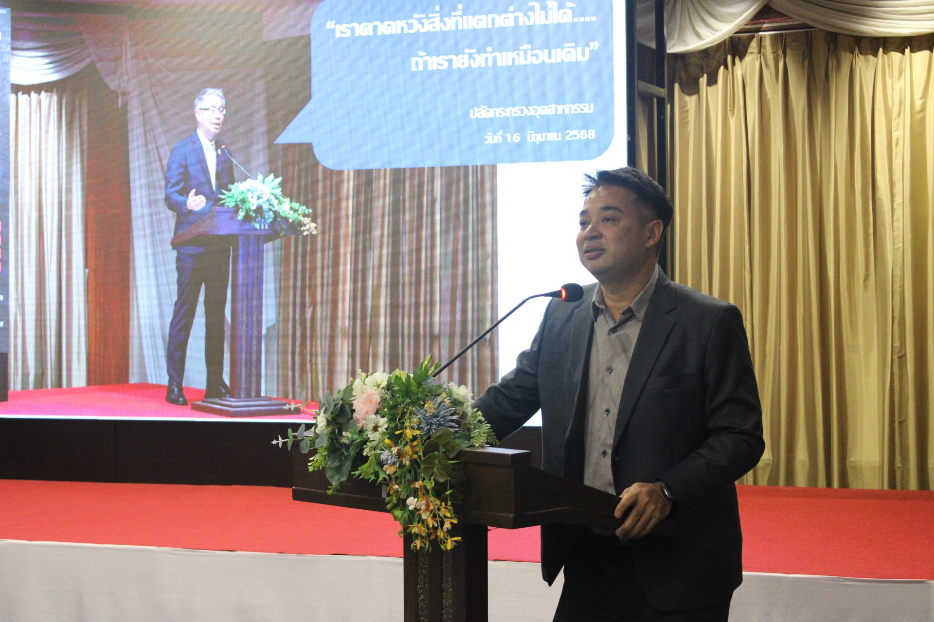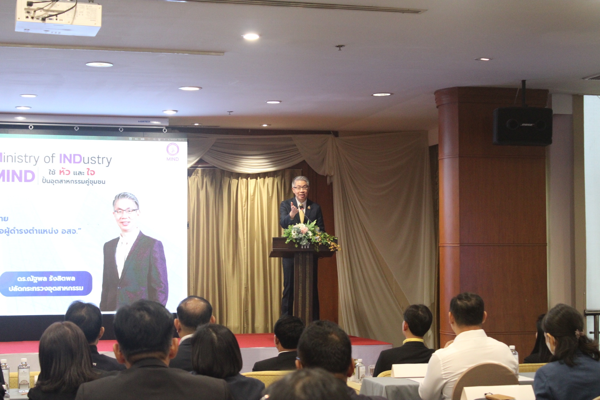ทั้งนี้ ดร.ณัฐพล รังสิตพล ปลัดกระทรวงอุตสาหกรรม ได้มอบนโยบาย “ความคาดหวังของผู้บริหารต่อผู้ดำรงตำแหน่ง อสจ.” รวมถึงการมอบนโยบายด้านการตรวจสอบ กำกับดูแลการประกอบกิจการโรงงาน โดย นายพรยศ กลั่นกรอง อธิบดีกรมโรงงานอุตสาหกรรม การมอบนโยบายด้านการส่งเสริมอุตสาหกรรม โดย นางสาวณัฏฐิยา เนตยสุภา อธิบดีกรมส่งเสริมอุตสาหกรรม การมอบนโยบายด้าน Digital Government โดย นายวิฤทธิ์ วิเศษสินธุ์ รองปลัดกระทรวงอุตสาหกรรม และการแลกเปลี่ยนประสบการณ์ด้านโรงงาน และด้านส่งเสริม โดย นายเตมีย์ พันธุวงค์ราช ผู้ช่วยปลัดกระทรวงอุตสาหกรรม นอกจากนี้ ยังได้รับเกียรติจากวิทยากรผู้ชี่ยวชาญในด้านต่าง ๆ ได้แก่
