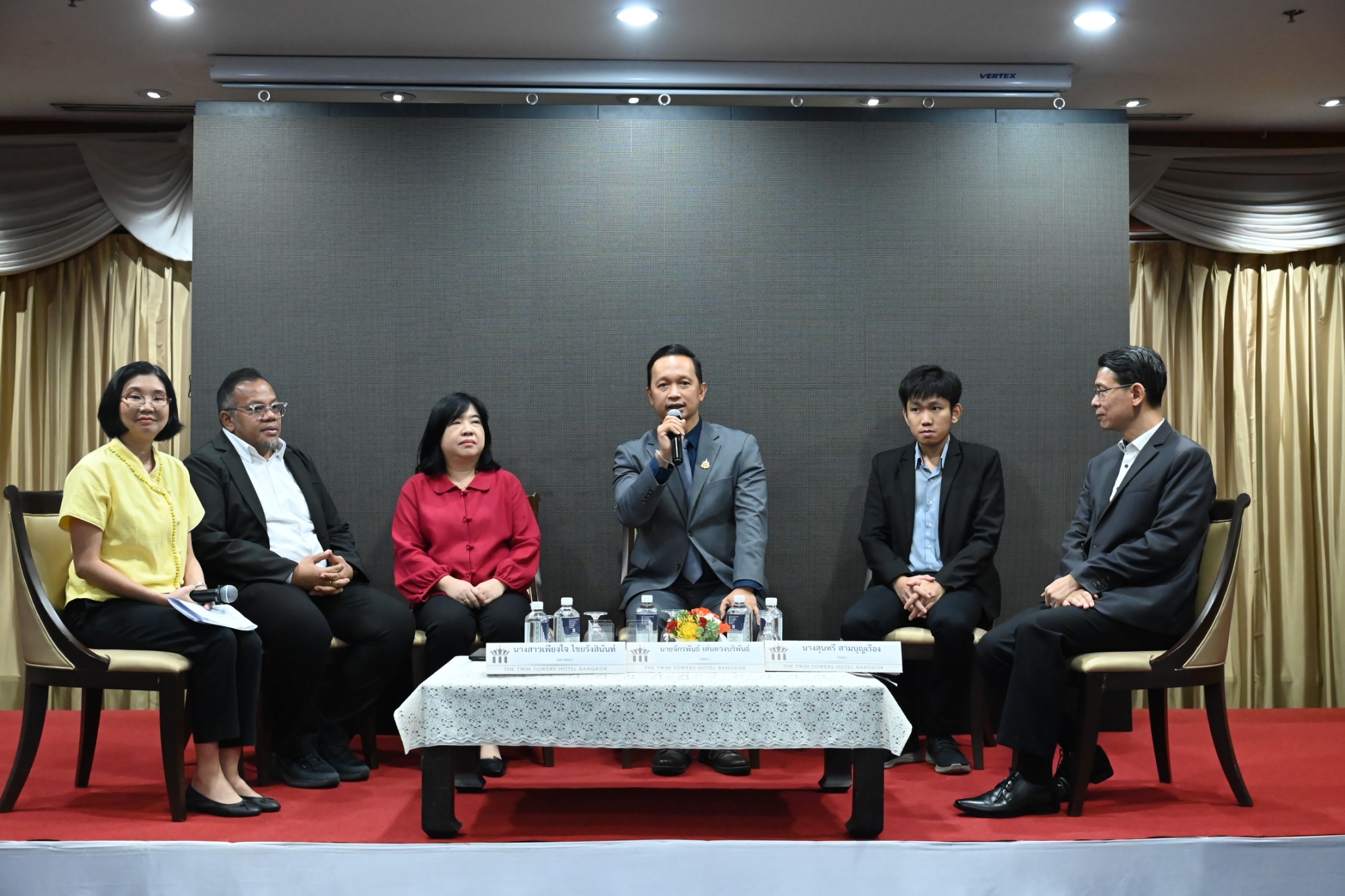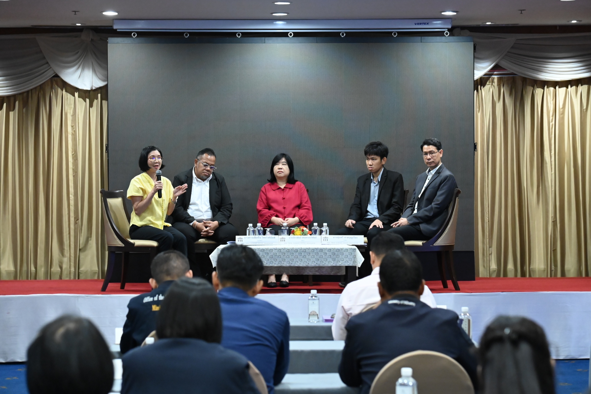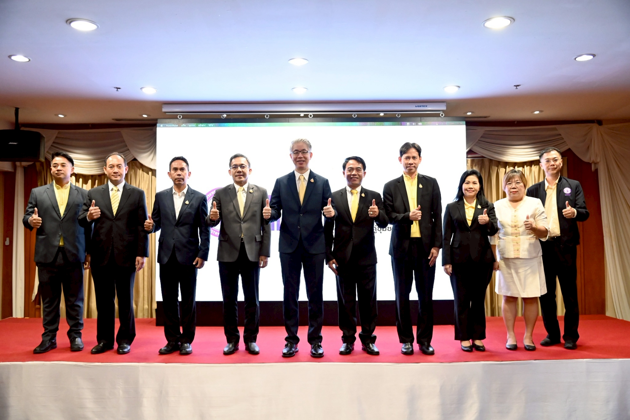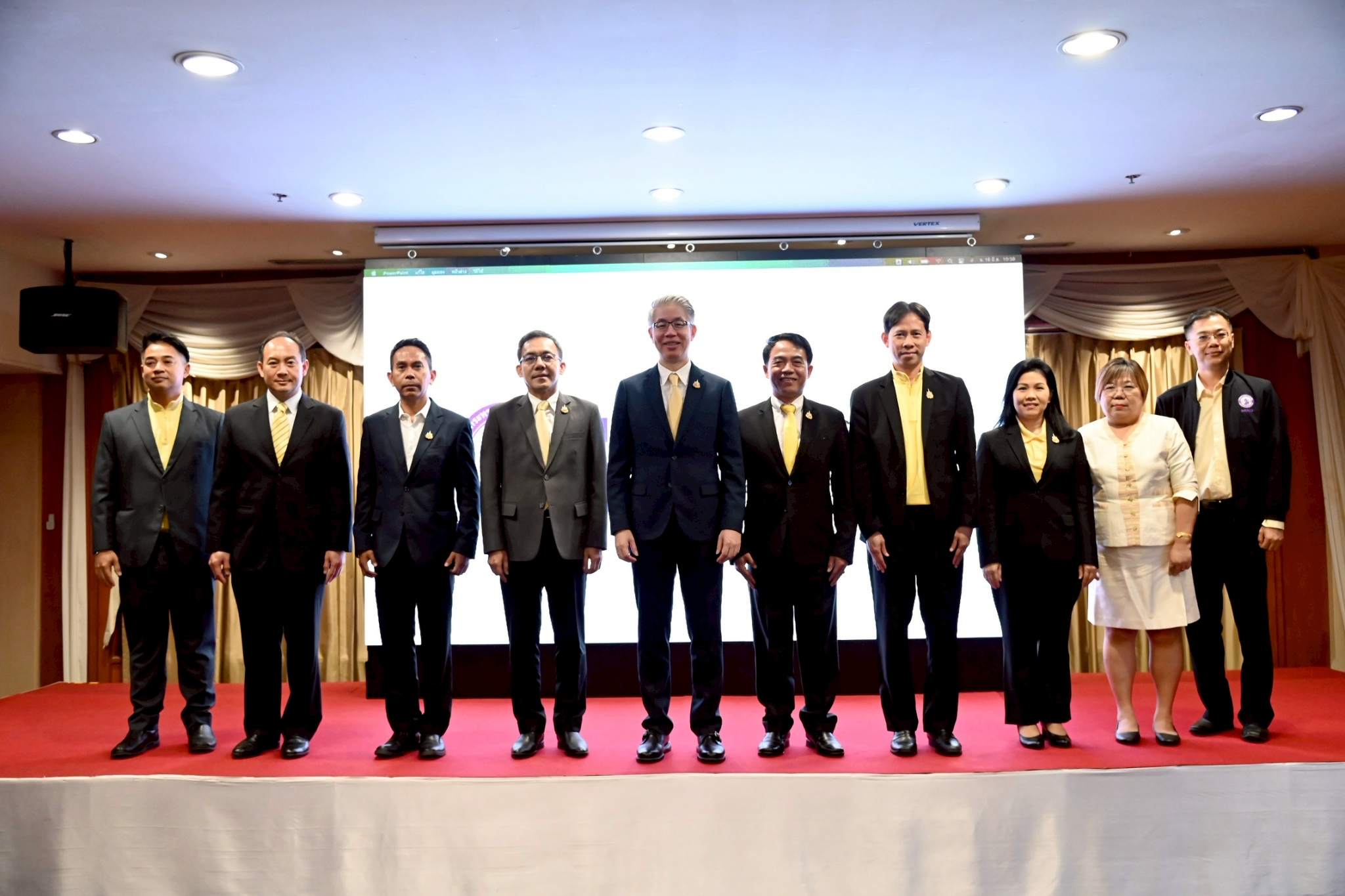 โดย นายธีรทัศน์ อิศรางกูร ณ อยุธยา รรอ. นางสาวอารยา ไสลเพชร รพร. นางพงษ์ศิริ วรรณศรี รมอ. นางสาวเพียงใจ ไชยรังสินันท์ ผอ.ศทส.สปอ. นายธนู ศิรินอก ศทส.สปอ. นายเอกชัย แก้ววงษา ศทส.สปอ. นางสุนทรี สามบุญเรือง กรอ. และนายจักรพันธ์ เด่นดวงบริพันธ์ ผอ.กส.สศอ.