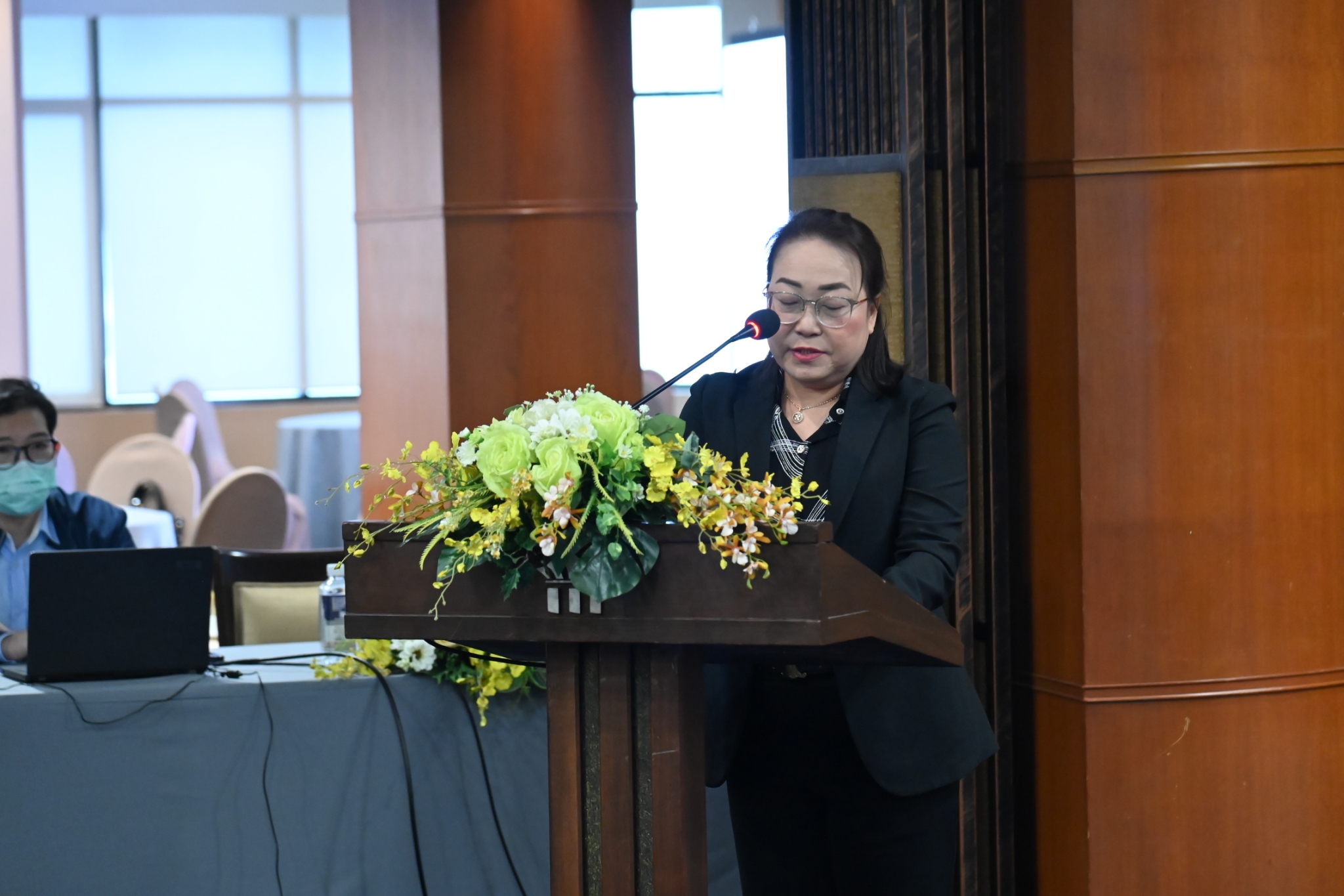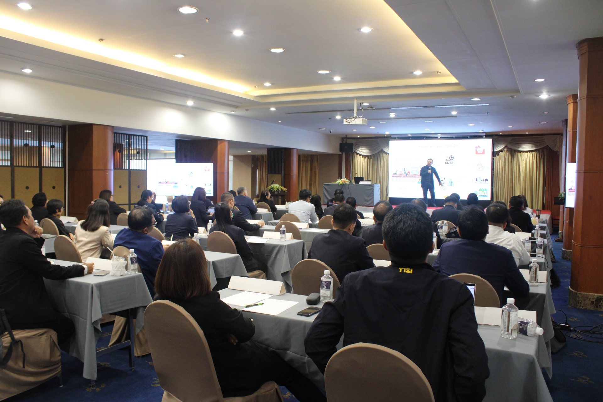 โดย นายวชิระ ไม้แพ ที่ปรึกษาด้านกฎหมาย สปอ. และ นายสมชัย เอมบำรุง ผอ.กม. สปอ. - กิจกรรมเสวนา “ระบบข้อมูล การบริหารจัดการข้อมูล การกำกับติดตามสถานประกอบการ ตาม พ.ร.บ.และกฏหมายที่เกี่ยวข้อง การบันทึกข้อมูลในระบบ”