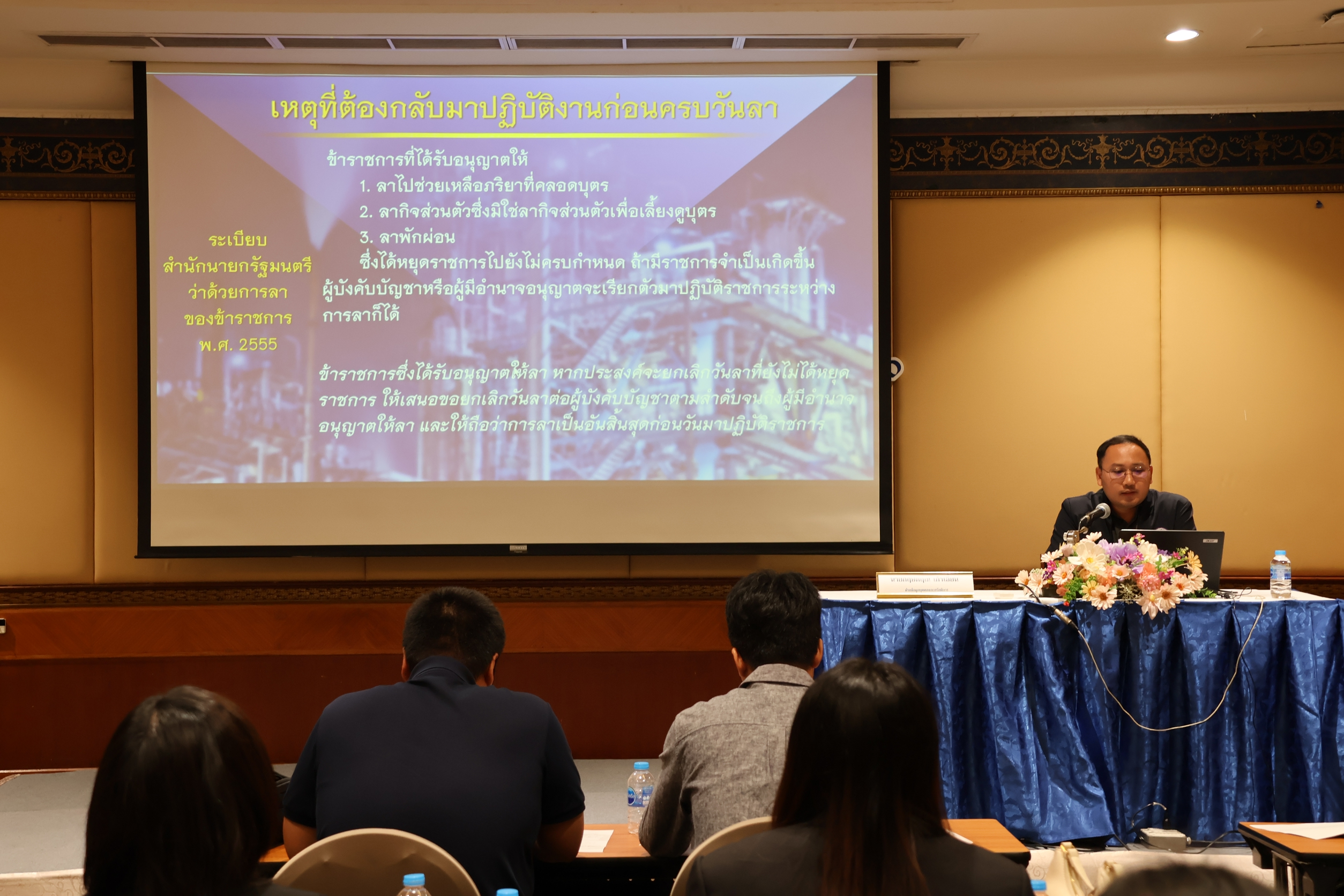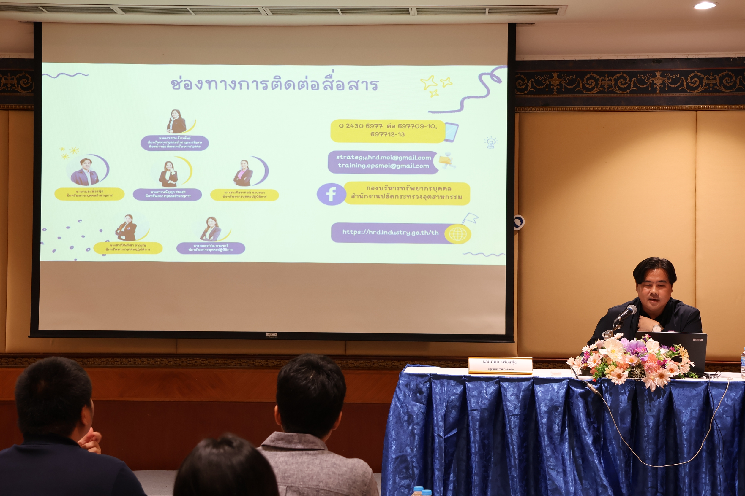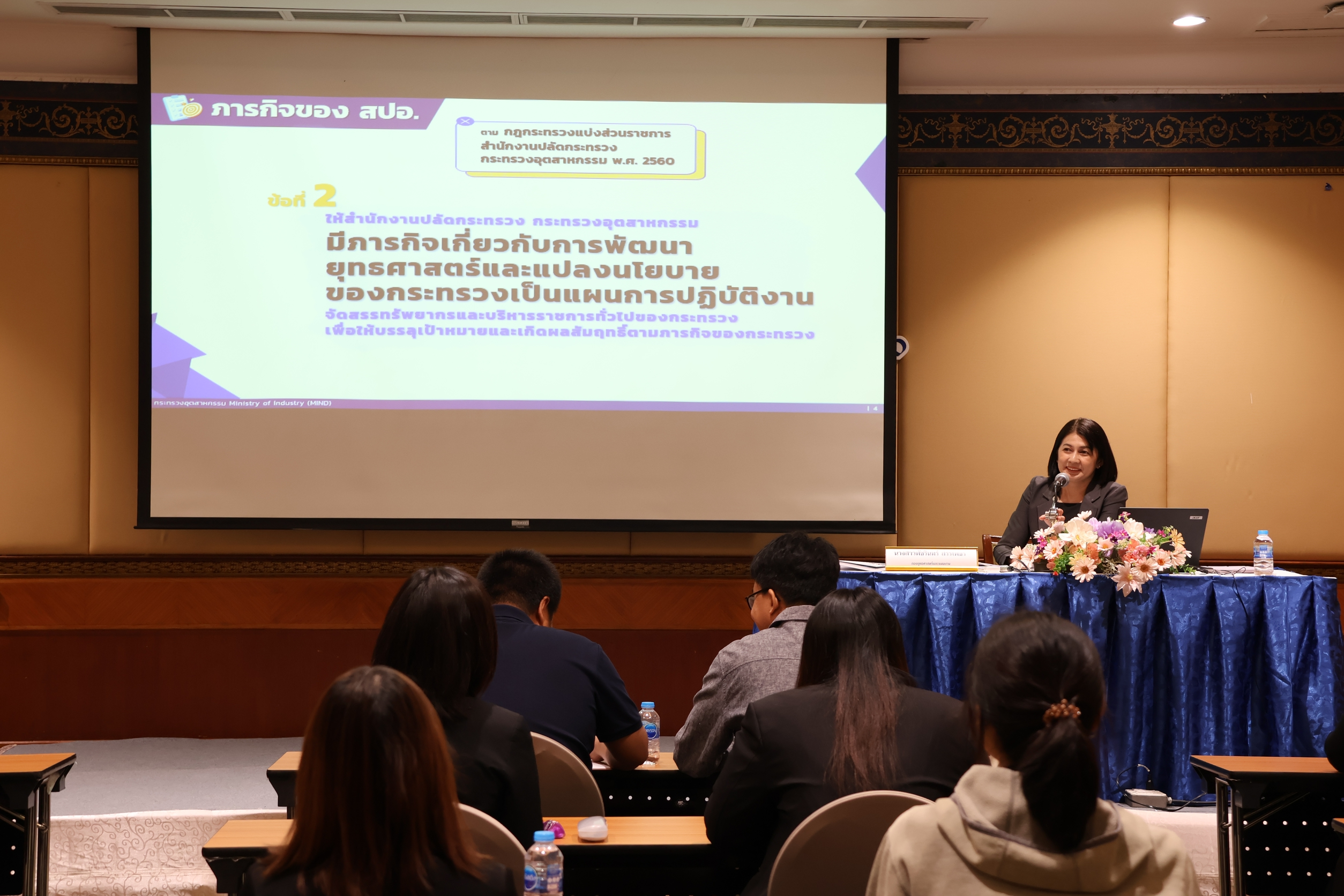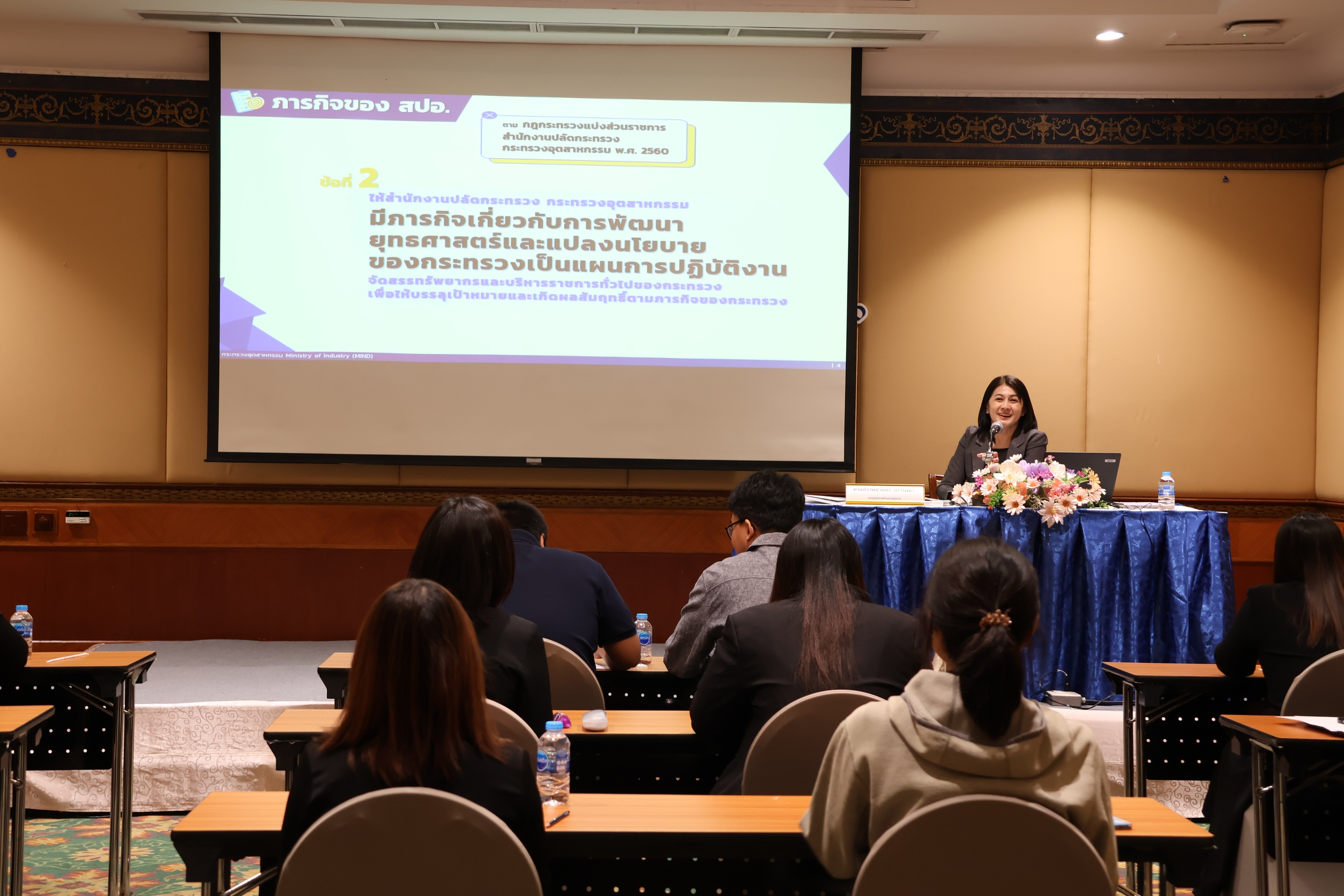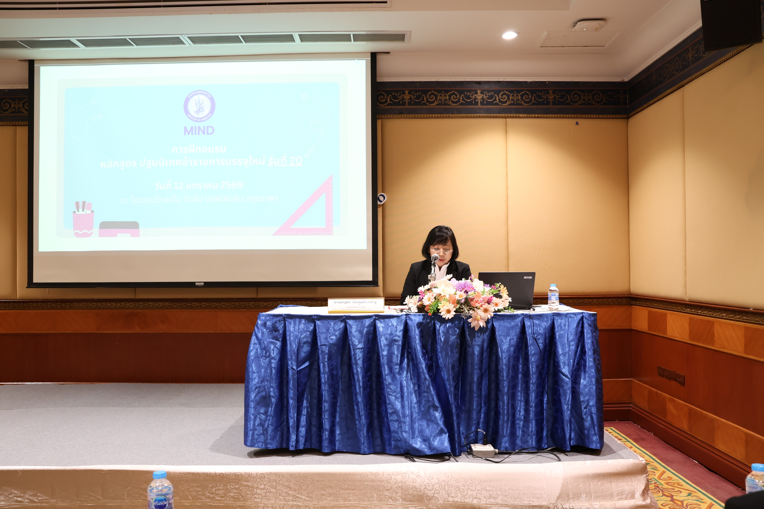 กองบริหารทรัพยากรบุคคล สำนักงานปลัดกระทรวงอุตสากรรม ได้จัดการฝึกอบรม หลักสูตร ปฐมนิเทศข้าราชการบรรจุใหม่ รุ่นที่ 20 เมื่อวันที่ 12 มกราคม 2569 ณ โรงแรมโกลเด้น ทิวลิป ซอฟเฟอริน กรุงเทพฯ โดยมี นางนฤมล ลือสุขประเสริฐ นักทรัพยากรบุคคลชำนาญการพิเศษ รักษาการในตำแหน่งผู้อำนวยการกองบริหารทรัพยากรบุคคล เป็นประธานในพิธีเปิดการฝึกอบรมฯ