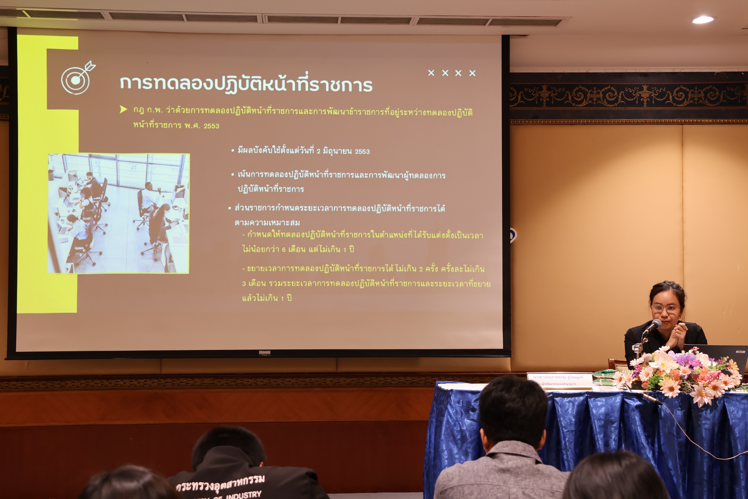 ซึ่งมีกลุ่มเป้าหมายเป็นข้าราชการบรรจุใหม่ในสังกัดสำนักงานปลัดกระทรวงอุตสาหกรรม บรรจุระหว่างเดือนกรกฎาคม ถึงเดือนธันวาคม เข้าอบรมฯ จำนวน 17 คน ได้แก่ สปอ. ส่วนกลาง จำนวน 10 คน และส่วนภูมิภาค (สอจ.) จำนวน 7 คน