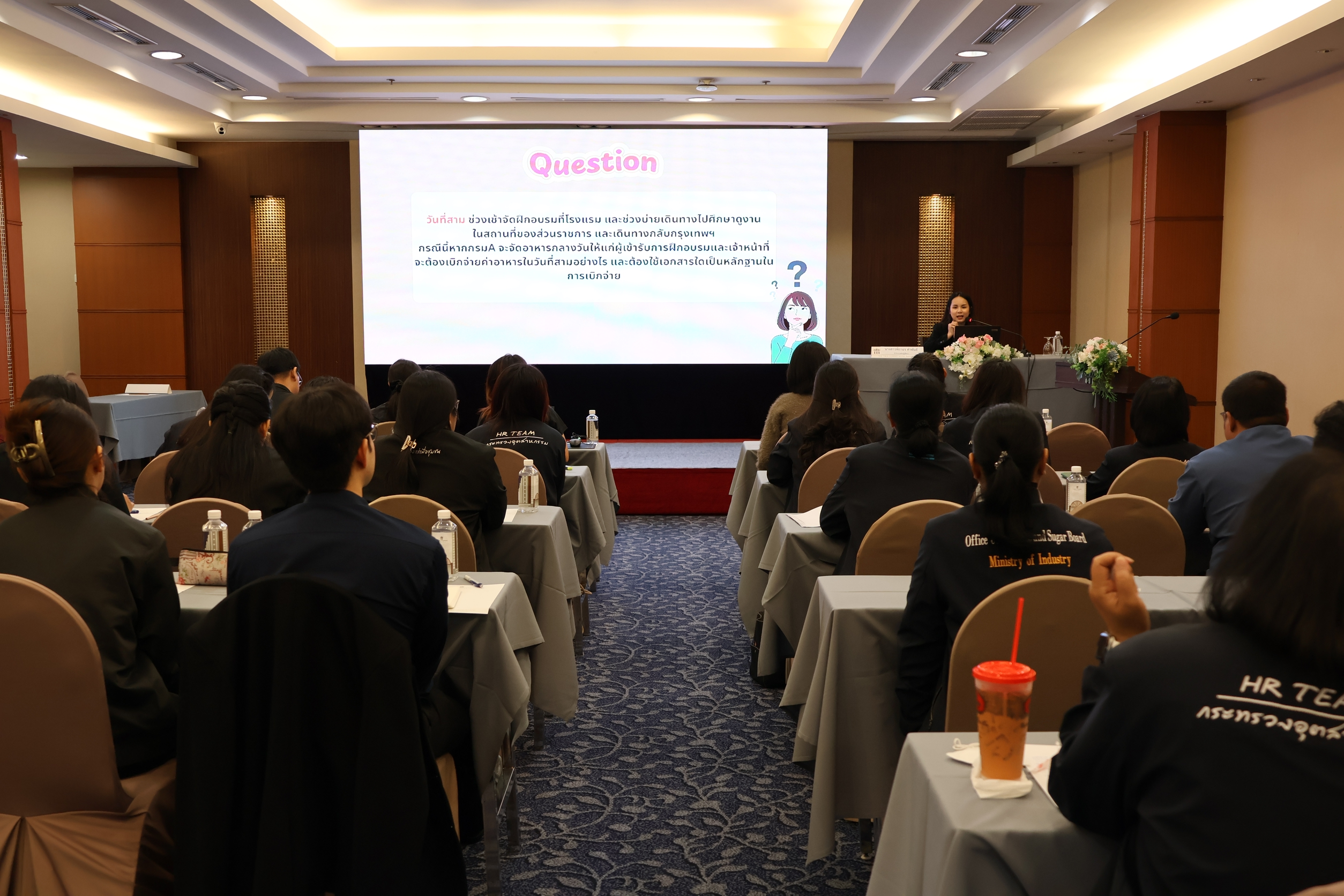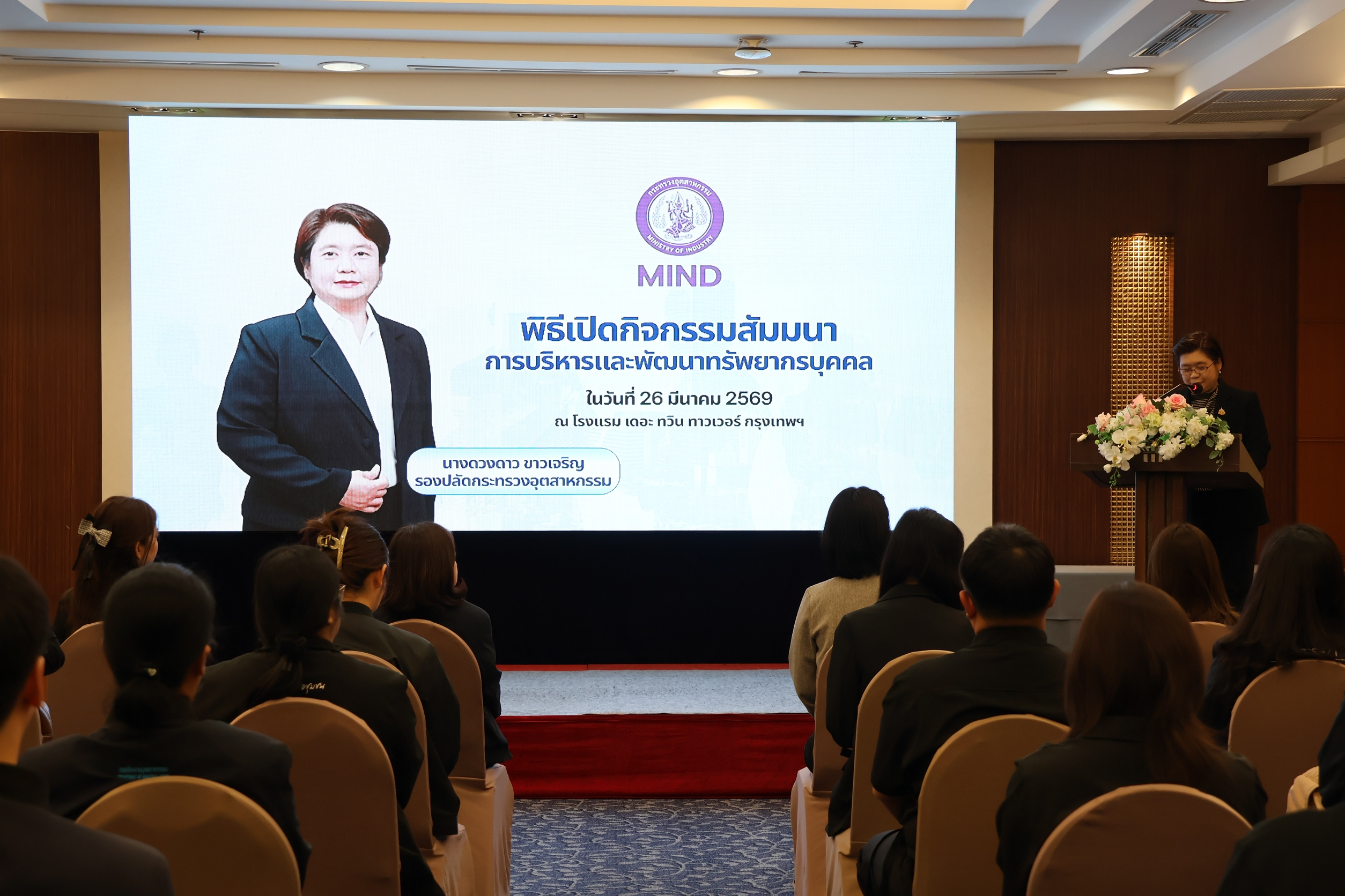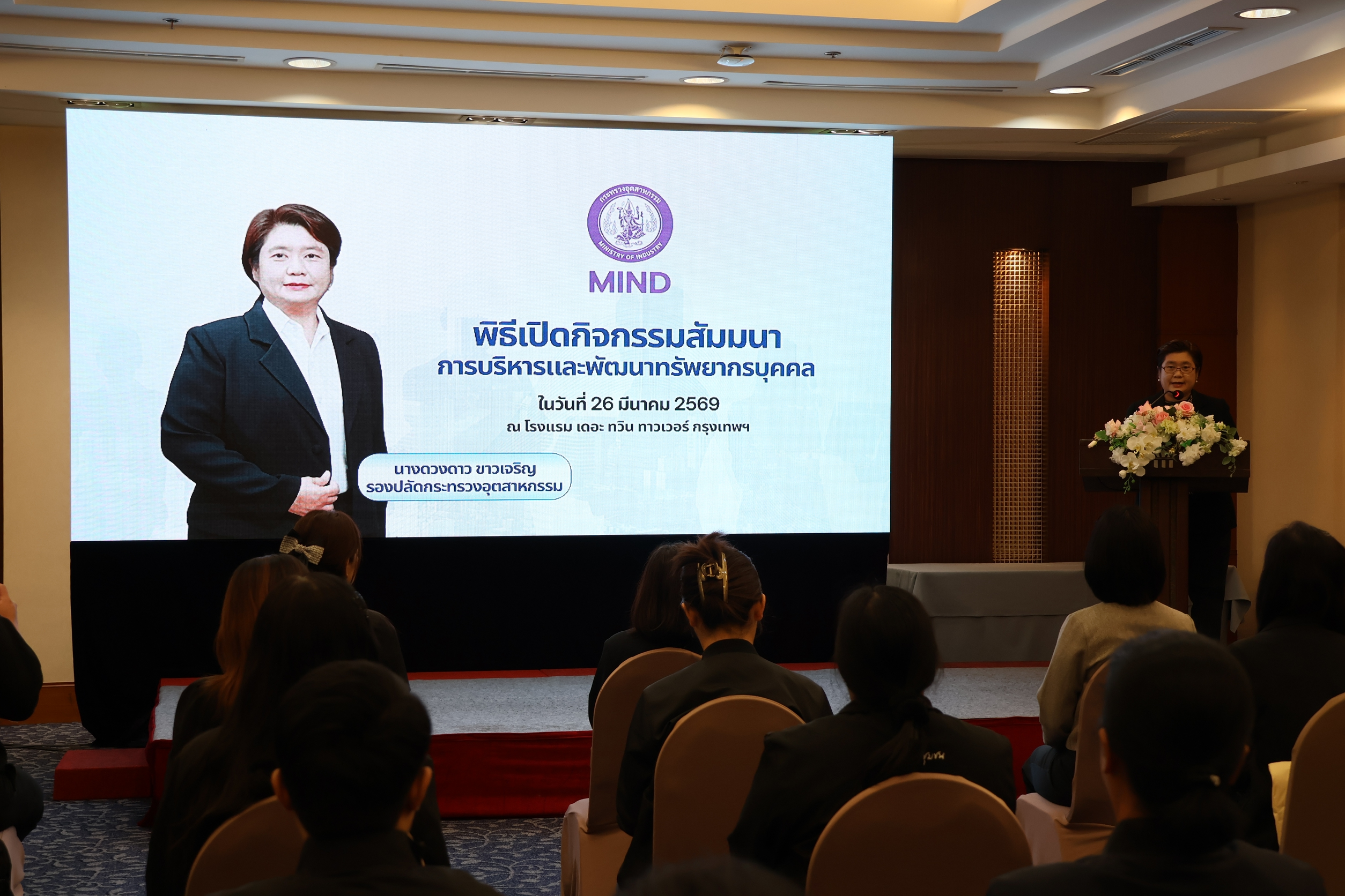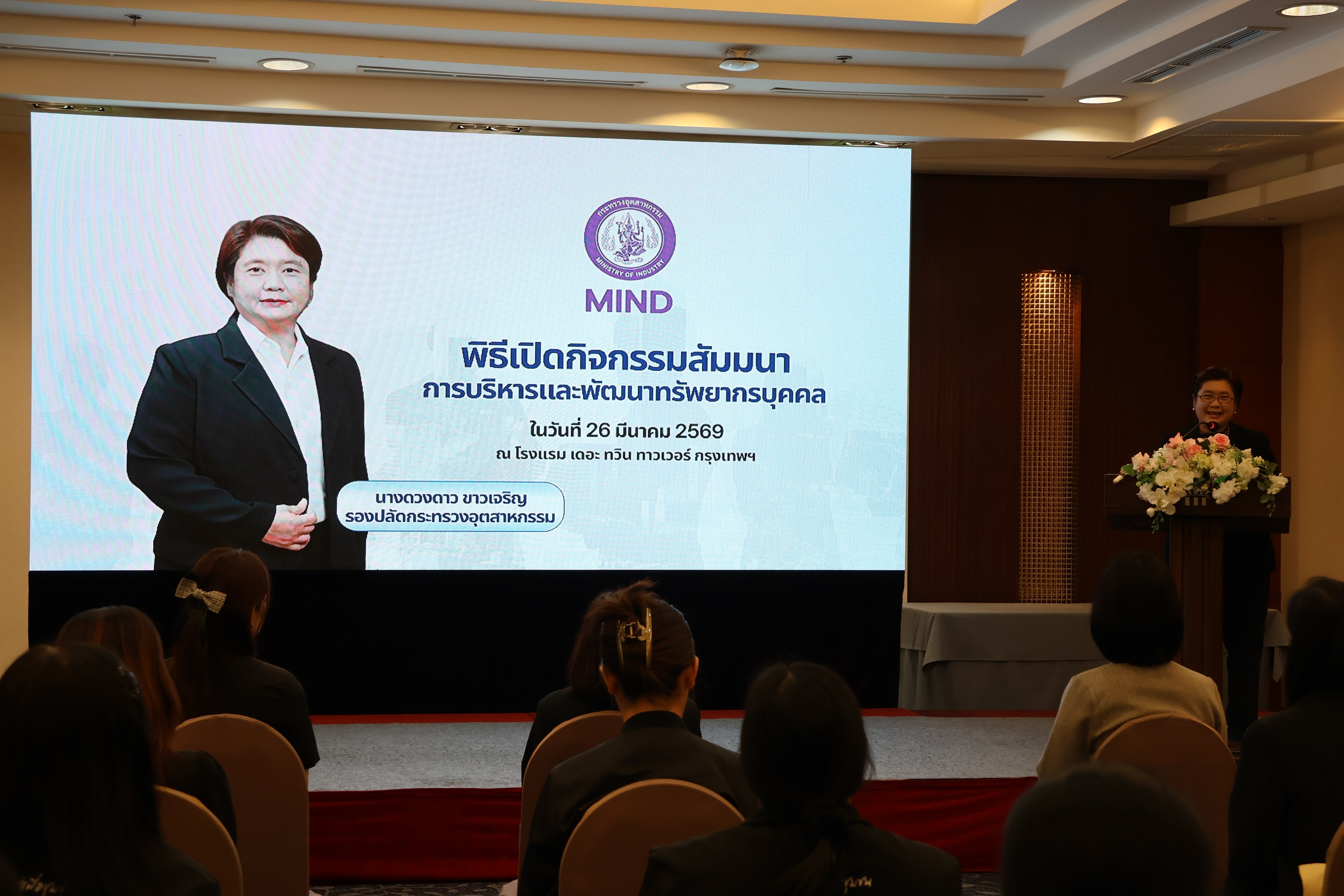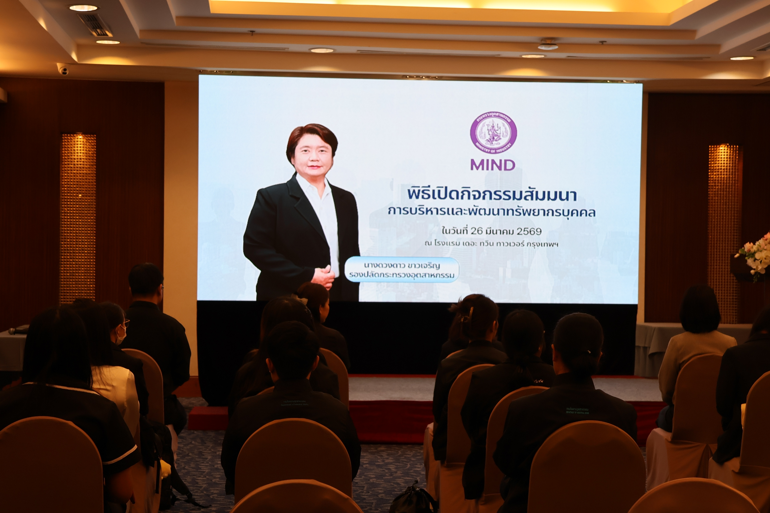 กองบริหารทรัพยากรบุคคล สำนักงานปลัดกระทรวงอุตสากรรม ได้จัดกิจกรรมสัมมนาการบริหารและพัฒนาทรัพยากรบุคคล ระหว่างวันที่ 26 - 27 มีนาคม 2569 ณ โรงแรม เดอะ ทวิน ทาวเวอร์ กรุงเทพฯ โดยมี รองปลัดกระทรวงอุตสาหกรรม (นางดวงดาว ขาวเจริญ) เป็นประธานในพิธีเปิดการฝึกอบรมฯ และกล่าวรายงานโดย นางนฤมล ลือสุขประเสริฐ รักษาการในตำแหน่งผู้อำนวยการกองบริหารทรัพยากรบุคคล โดยมีวัตถุประสงค์เพื่อเสริมสร้างความรู้ความเข้าใจเกี่ยวกับระเบียบการปฏิบัติงานด้านการบริหารและพัฒนาทรัพยากรบุคคล และการสร้างเครือข่ายในการปฏิบัติงานร่วมกันของนักทรัพยากรบุคคลของกระทรวงอุตสาหกรรม