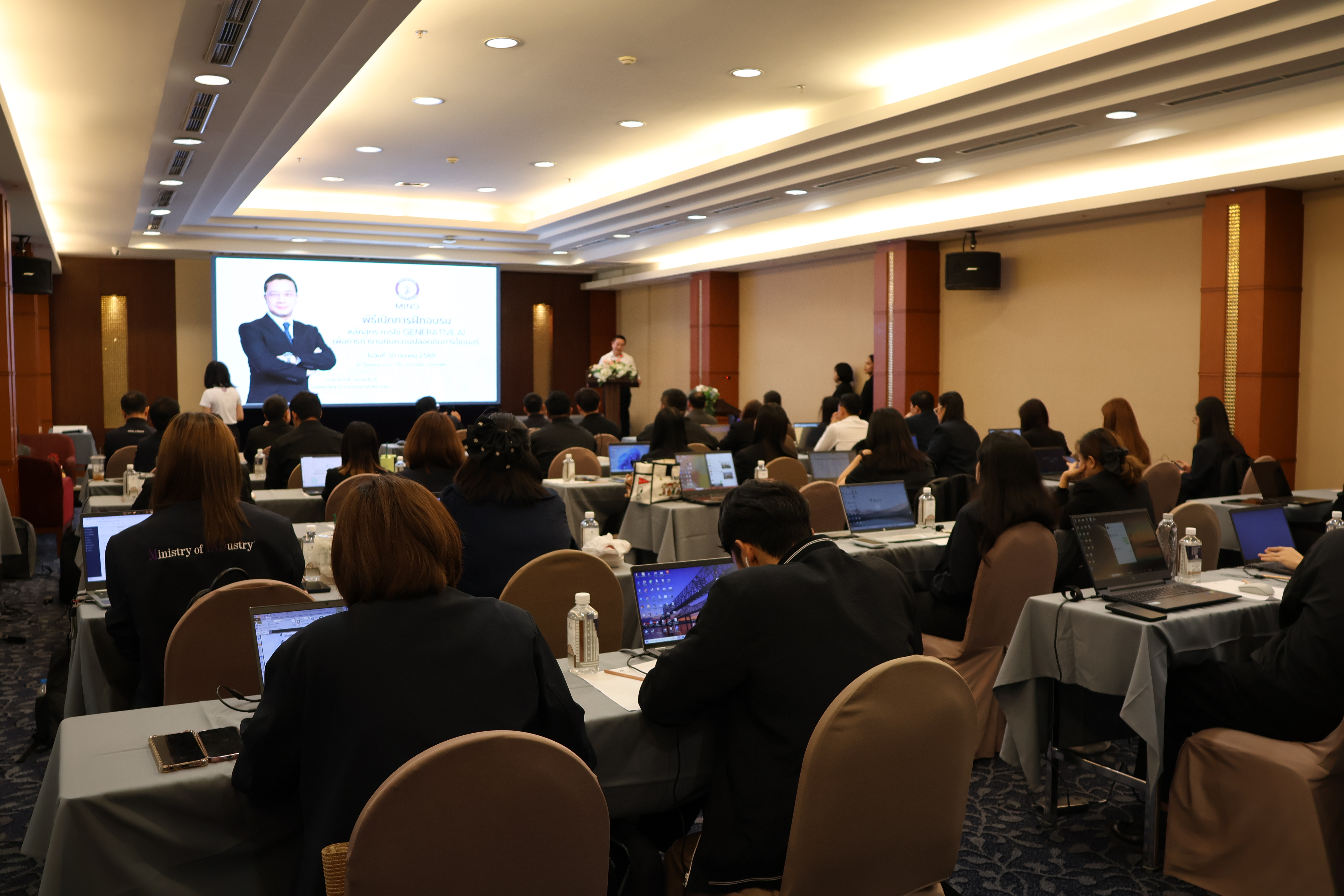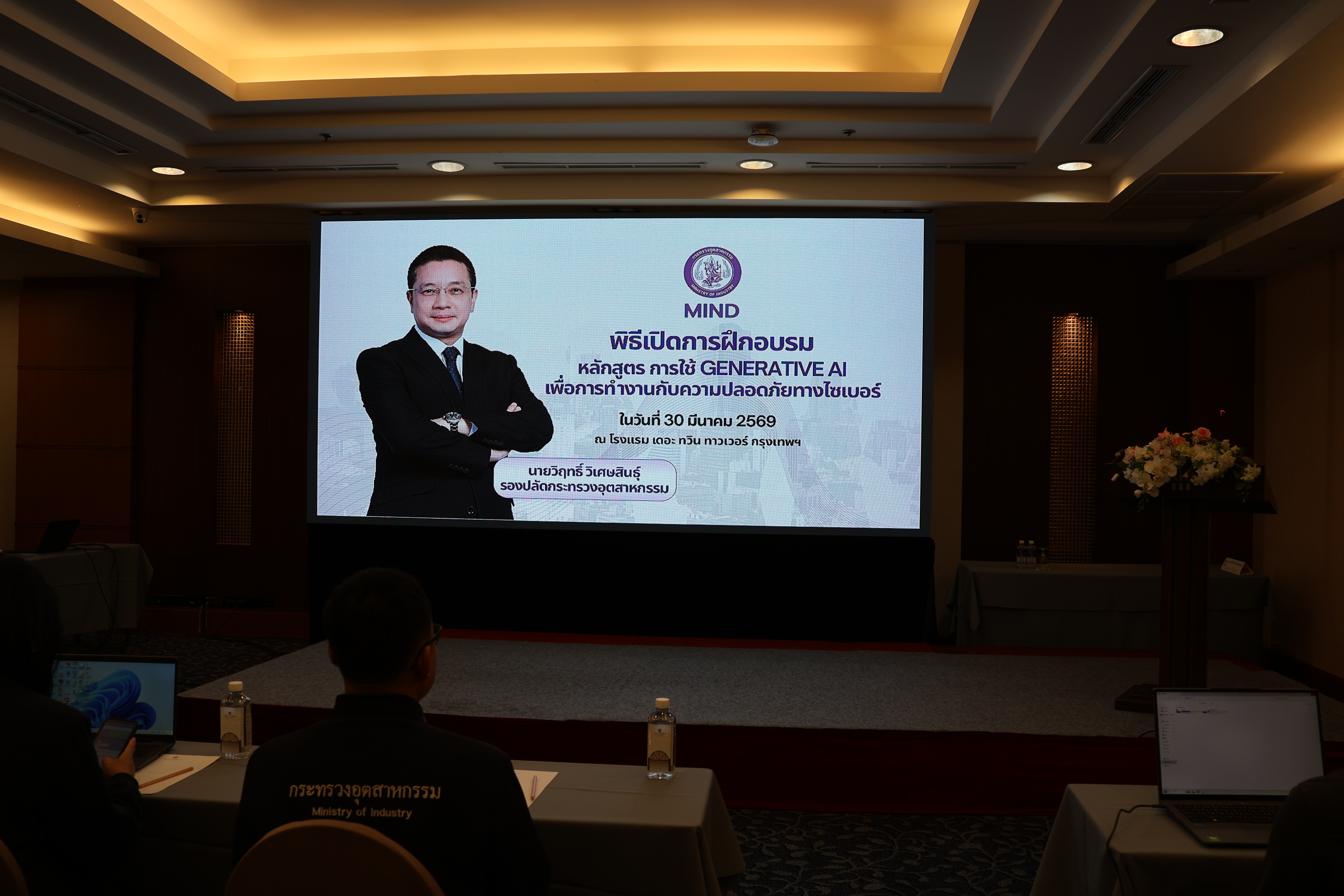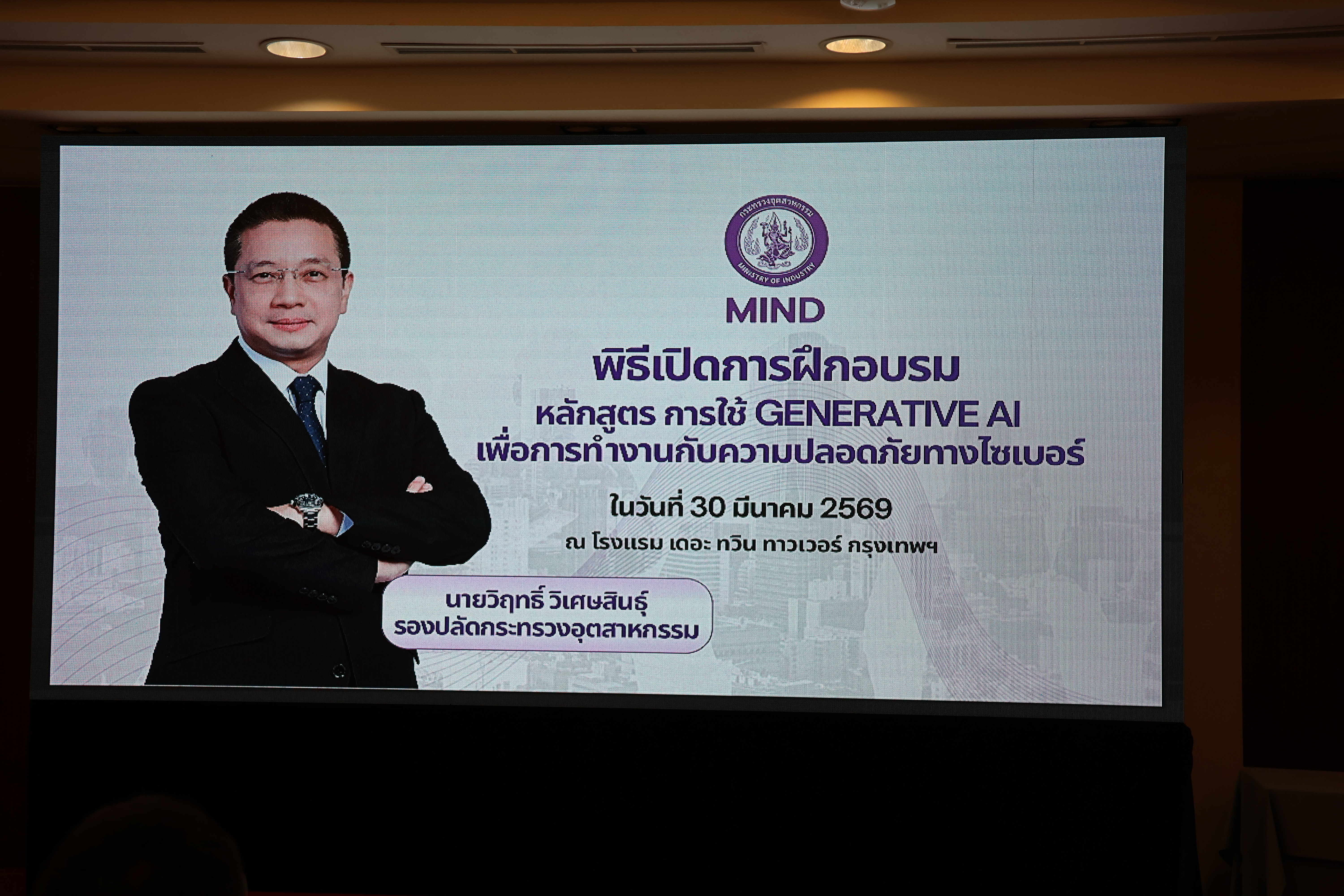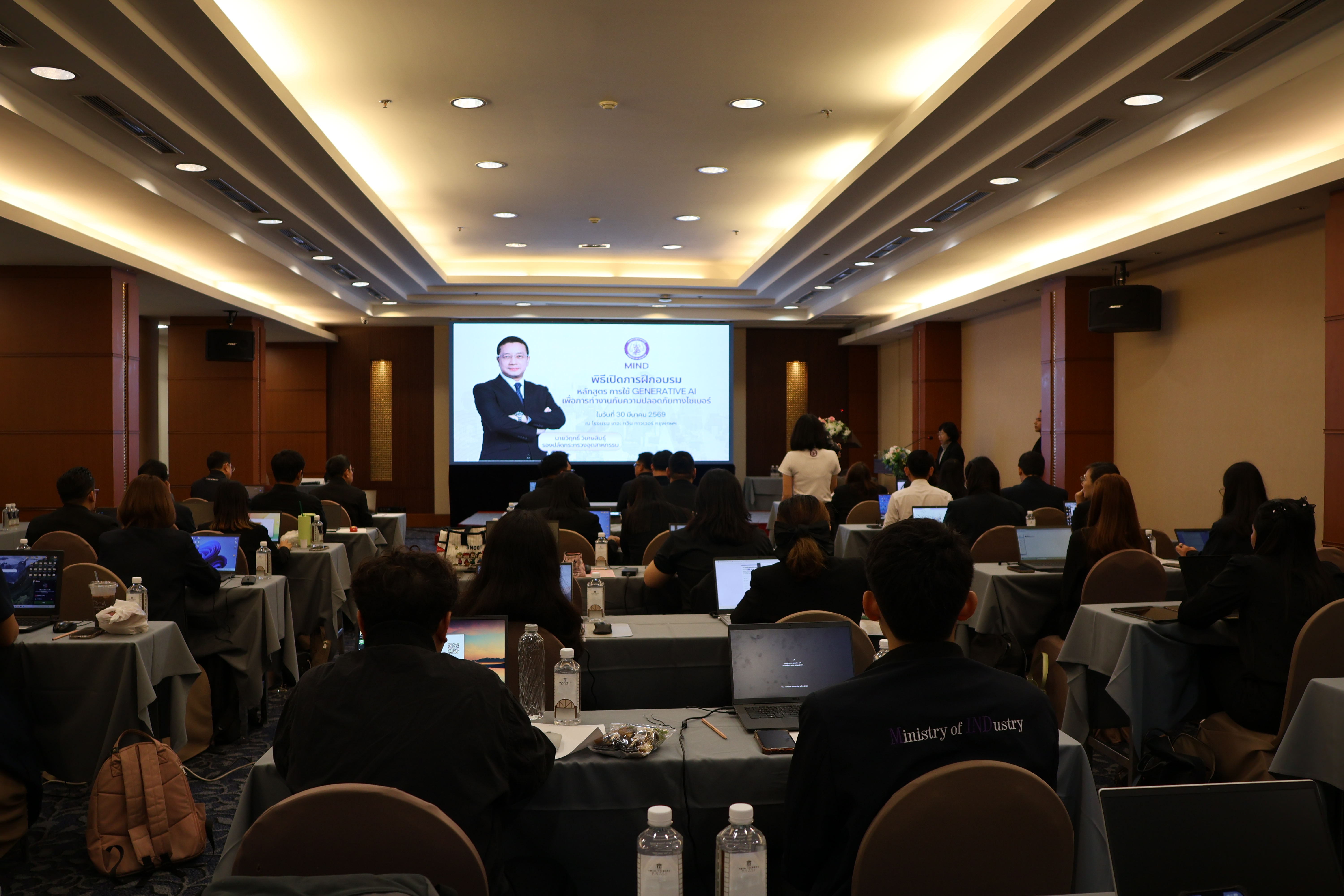 กองบริหารทรัพยากรบุคคล สำนักงานปลัดกระทรวงอุตสากรรม ได้จัดการฝึกอบรมหลักสูตร การใช้ Generative AI เพื่อการทำงานกับความปลอดภัยทางไซเบอร์ ระหว่างวันที่ 30 - 31 มีนาคม 2569 ณ โรงแรม เดอะ ทวิน ทาวเวอร์ กรุงเทพฯ โดยมี รองปลัดกระทรวงอุตสาหกรรม (นายวิฤทธิ์ วิเศษสินธุ์) เป็นประธานในพิธีเปิดการฝึกอบรมฯ และกล่าวรายงานโดย นางนฤมล ลือสุขประเสริฐ รักษาการในตำแหน่งผู้อำนวยการกองบริหารทรัพยากรบุคคล โดยมีวัตถุประสงค์ ดังนี้