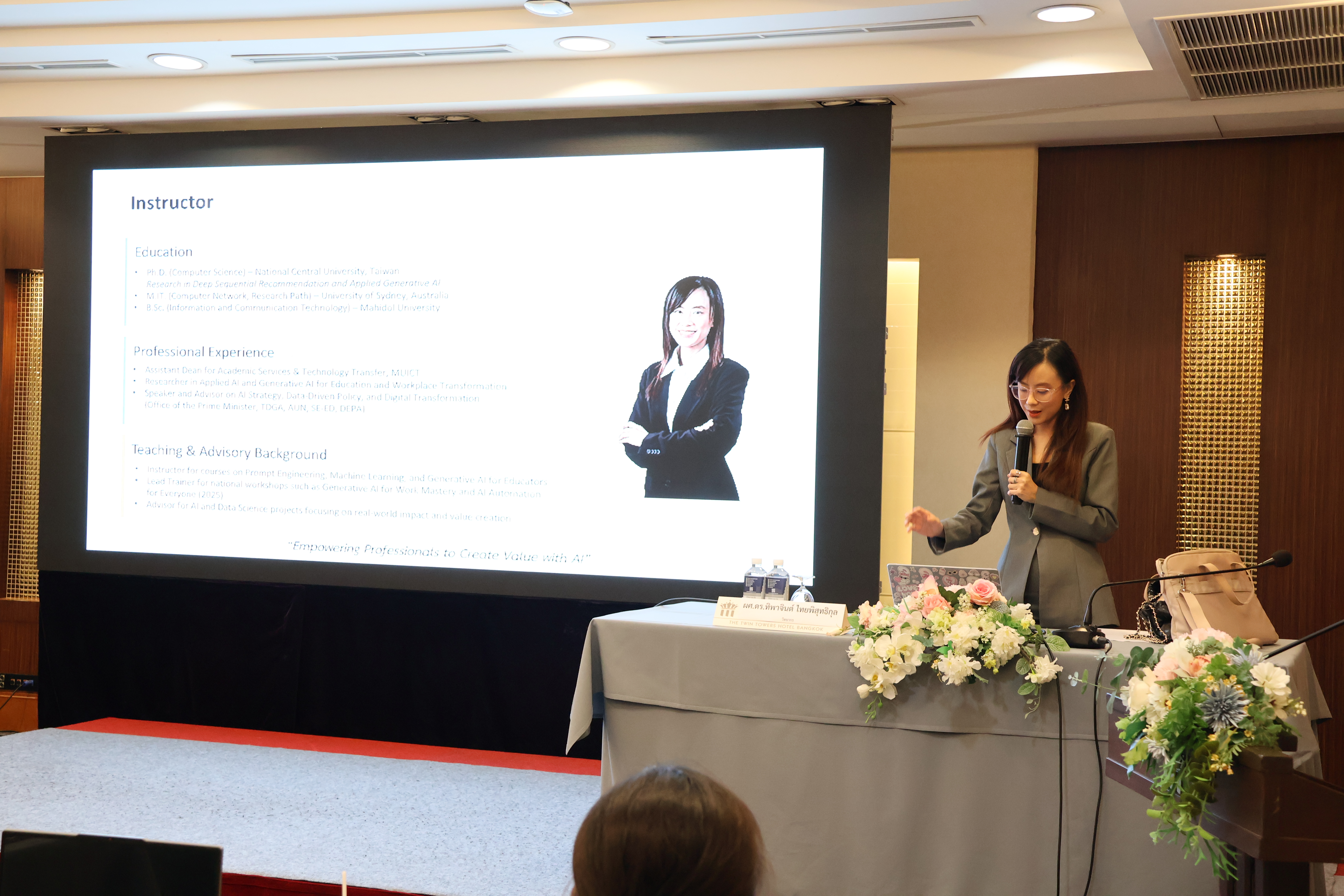 - การฝึกปฏิบัติการใช้เทคโนโลยี AI ในการปฏิบัติงาน การใช้ AI ในงานเอกสาร/ประชุม/จัดการข้อมูล แนะนำเครื่องมือที่ใช้ได้ทันที เช่น ChatGPT, Gemini, Deepseek, Perplexity เทคนิคการตั้งคำสั่ง (Prompt Engineering) สำหรับงานราชการ และการสร้างเนื้อหาด้วย AI: รายงาน ภาพ และเสียง โดยวิทยากร ผศ.ดร.ทิพาจินต์ ไทยพิสุทธิกุล และทีมวิทยากร